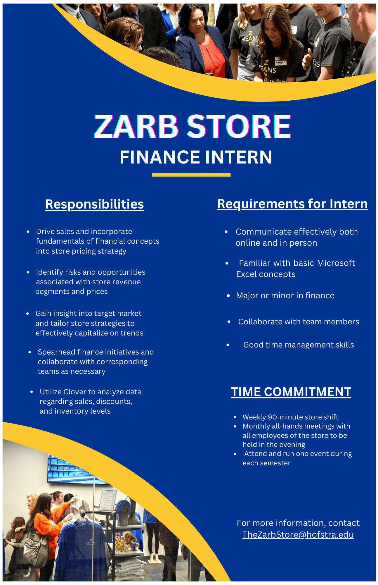 Thank you for your interest in an internship at The Zarb Store. We are currently only accepting applications for the following Departments: Marketing, and Business Analytics. Please send us your resume and a letter of interest stating your major and how an internship at the Zarb Store will support your academic and professional goals. We will be accepting applications for the Spring 25 semester starting in October.